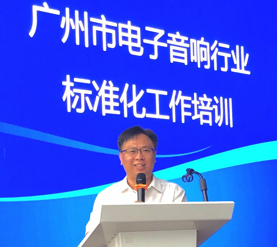 本次培训班由广州市市场监督管理局标准化处、花都区市场监督管理局指导,广州市电子音响行业协会主办,广州市标准化研究院、广东省音频设备与系统标准化技术委员会协办,国光电器股份有限公司、广州国光智能电子产业园有限公司提供支持。活动旨在为推动广州市电子音响行业“对标达标”提升工作,支持我市优势传统产业优化升级,鼓励和引导企业瞄准国际和国家标准提高水平,主动制定、实施先进标准,推动全市电子音响行业企业的产品和服务质量水平提升与创新。培训由广州市电子音响行业协会副会长兼秘书长张昌海主持。