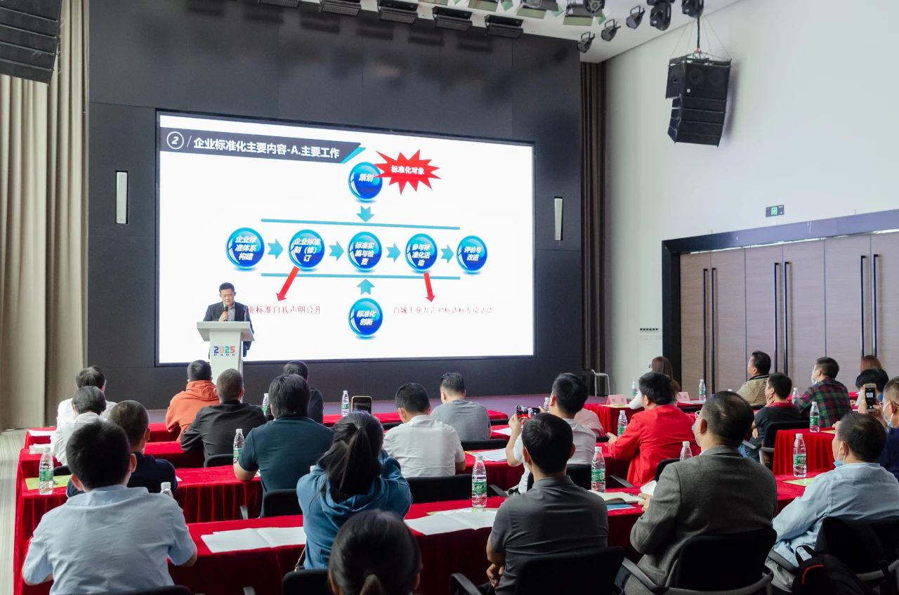 本次培训班由标准化高级工程师、广州市标准化研究院杨晓峰主任进行了授课,他分别对标准化的概念、原则,企业标准化的主要内容,标准化工作开展的方式方法,机构、人员与信息管理等四个方面作了讲解;对企业产品和服务标准自我声明公开和监督制度进行了解读,对《“百城千业万企对标达标提升”专项行动》政策进行了宣贯,对标准化与知识产权融合进行了解析。
