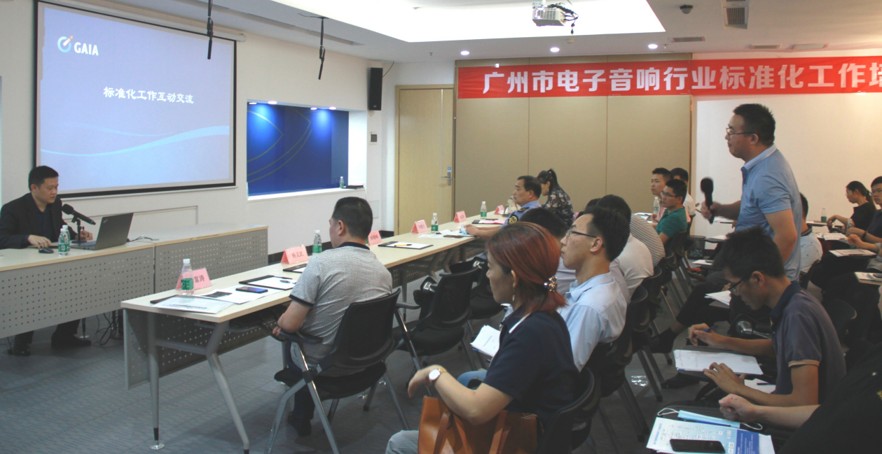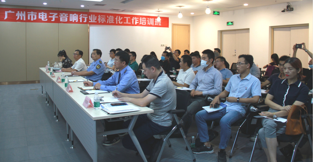 本次培训班由广州市市场监督管理局标准化处、番禺区市场监督管理局指导,广州市电子音响行业协会主办,广州市标准化研究院、广东省音频设备与系统标准化技术委员会协办,广州番禺巨大汽车音响设备有限公司、广州巨大创意产业园提供支持。活动旨在推动广州市电子音响行业“对标达标”提升工作,支持我市优势传统产业优化升级,鼓励和引导企业瞄准国际和国家标准提高水平,主动制定、实施先进标准,推动全市电子音响行业企业的产品和服务质量水平提升与创新。培训由广州市电子音响行业协会副会长兼秘书长张昌海主持。